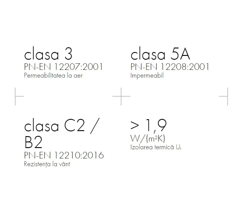 - Permeabilitate la aer: clasa 3, PN-EN 12207:2001