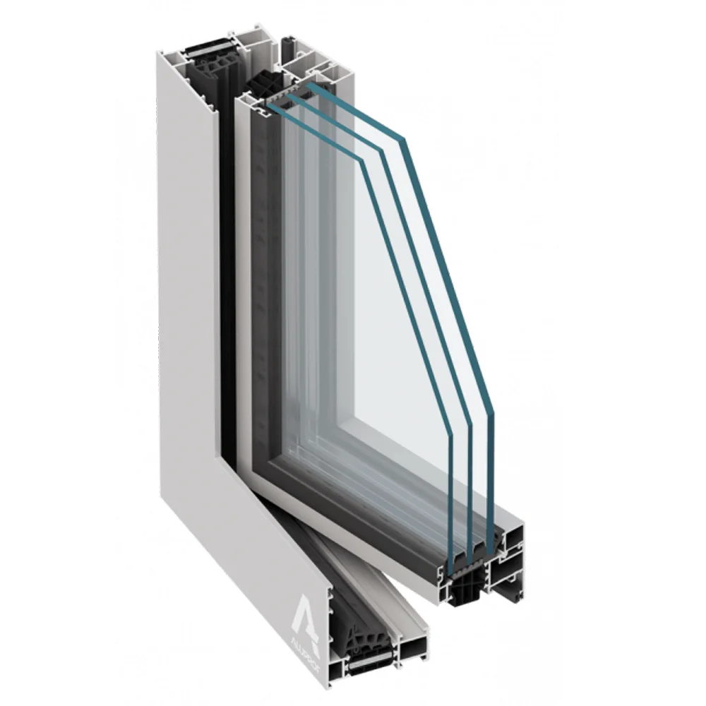 - Profilele au structură cu trei camere. Camera centrală reprezintă o izolație între profilele din aluminiu, este executată din inserții termice profilate cu lățimea de 33,5 sau 36 mm.