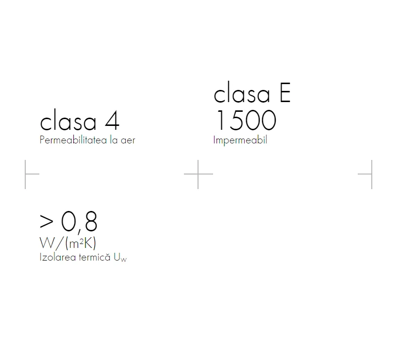 - Izolarea termică (Uw): de la 0,8 W/(m2K)