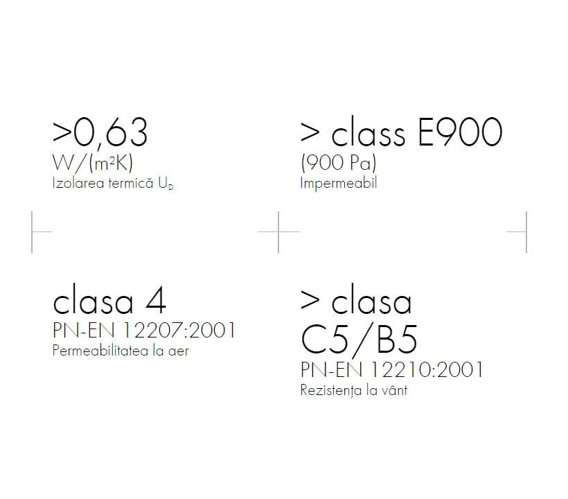 - Rezistenţă la vânt: Clasa C5/B5, PN-EN 12210:2001