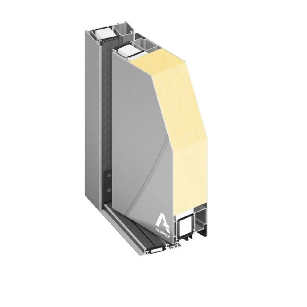 Construcția se bazează pe sisteme de profil din aluminiu cu termo izolare MB-86, cea mai avansata tehnologie de sisteme de uși prezenta in oferta ALUPROF. Profilul aripii este adaptat pentru unirea cu umpleri speciale, unit din partea interioara cu cerceveaua.